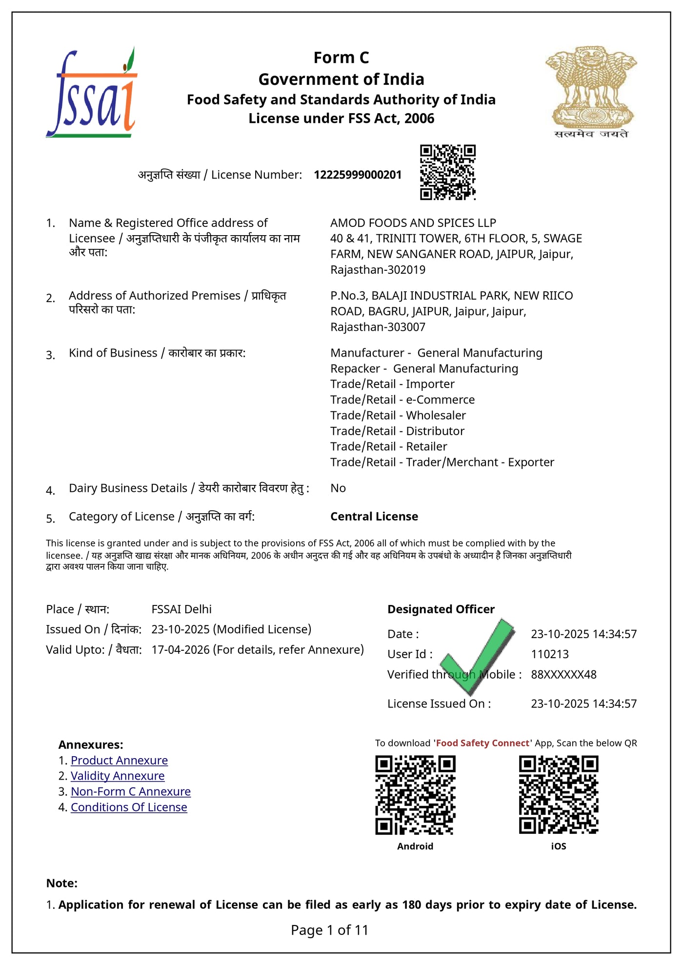 - FSSAI Certified – Ensures food safety and compliance with Indian standards.